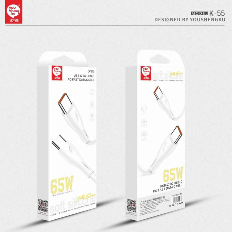 کابل شارژ تایپ دو سر سی YOUSHENGKU k55 یک کابل بسیار کارآمد و با کیفیت در عین حال بسیار اقتصادی از برند YOUSHENGKU بوده که قابلیت شارژ سریع و انتقال دیتا را دارد.